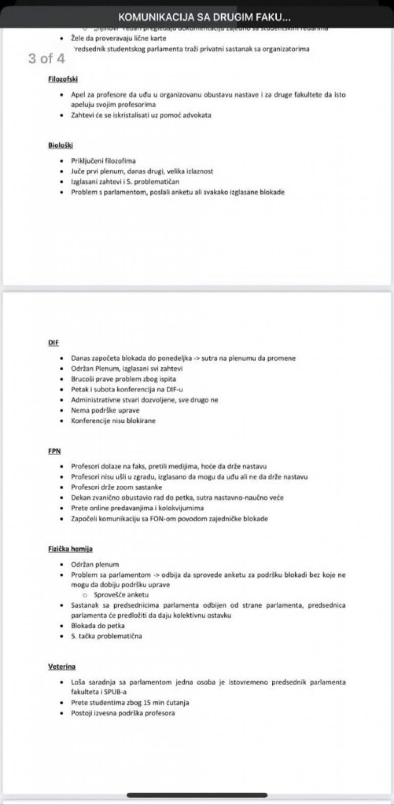ЕКСКЛУЗИВНО: Записник организатора протеста под називом „Комуникација са другим факултетима“ (ФОТО)
