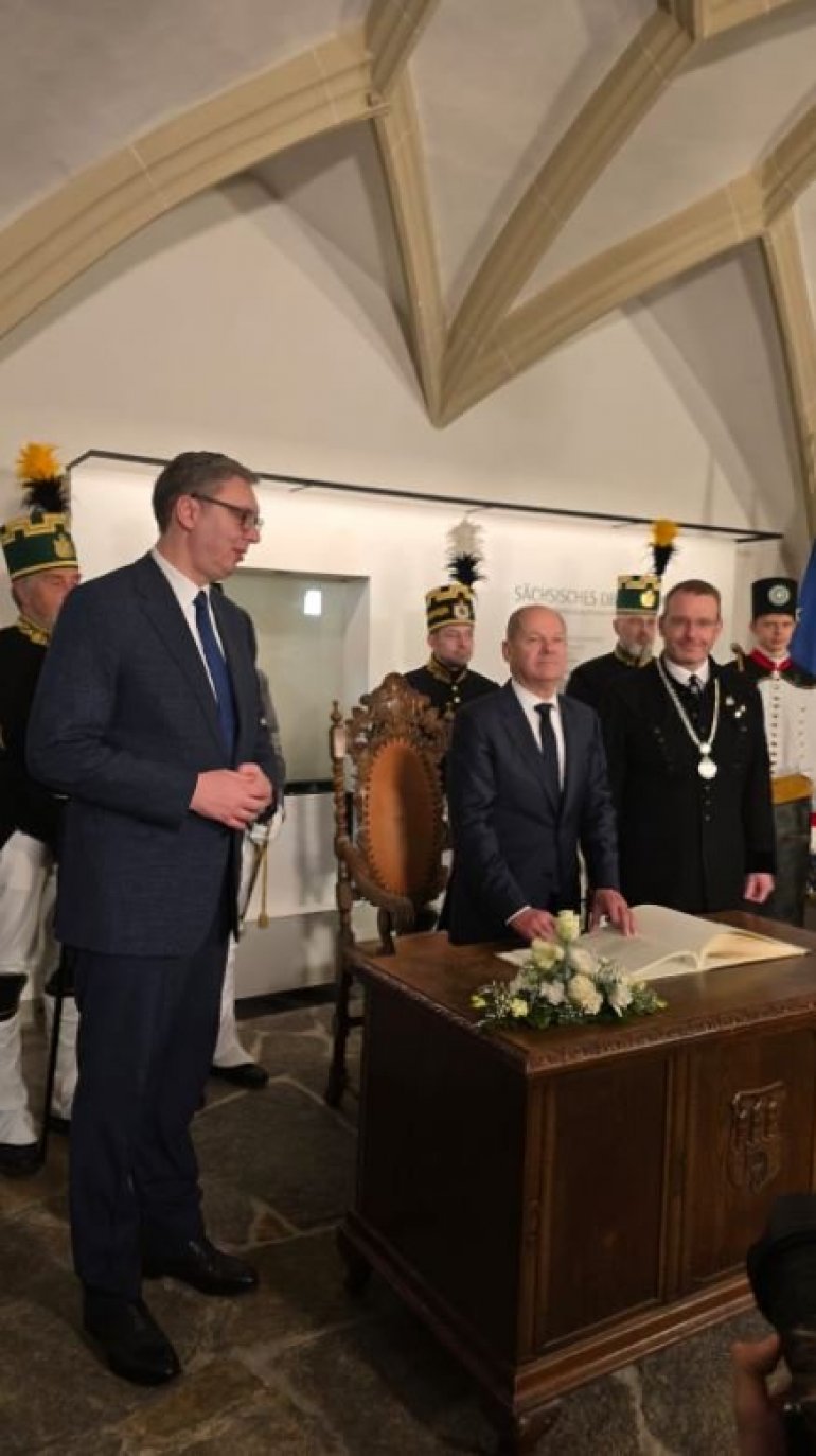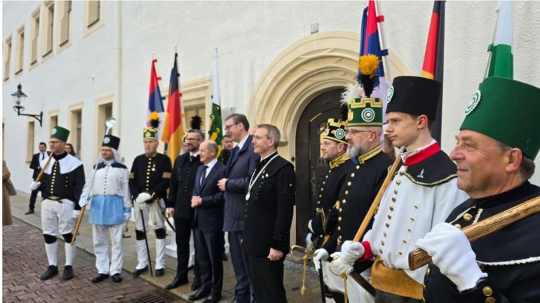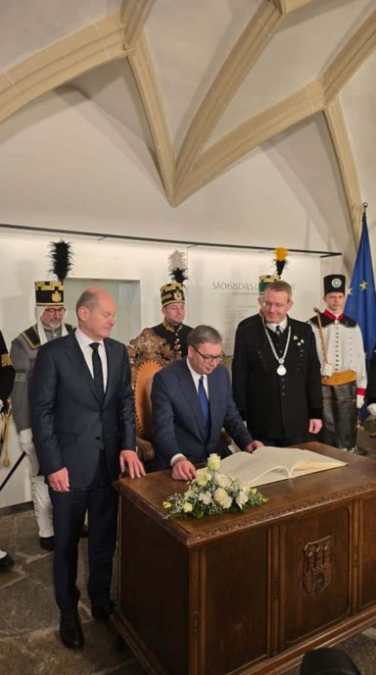 Председник Србије Алексндар Вучић дошао је у Фрајберг – Саксонску рударску управу, а дочекао га је Олаф Шолц, канцелар Савезне Републике Немачке и државни министар за економију, рад и транспорт Саксоније, Мартин Дулиг.