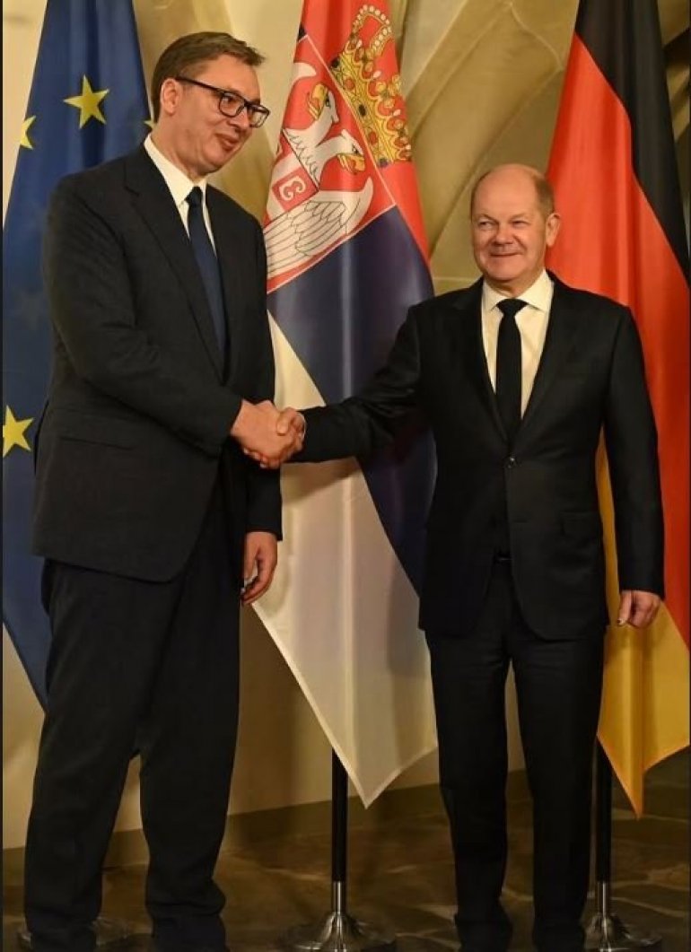 Председник Републике Србије Александар Вучић разговарао је у Фрајбергу са канцеларом Савезне Републике Немачке Олафом Шолцом.