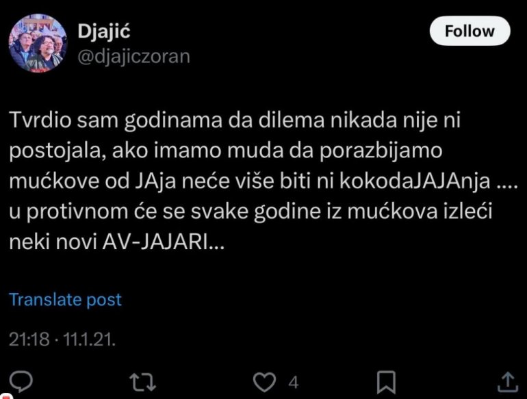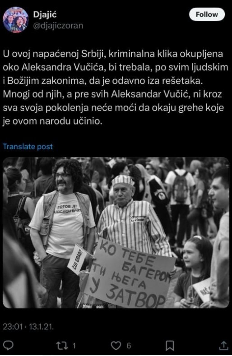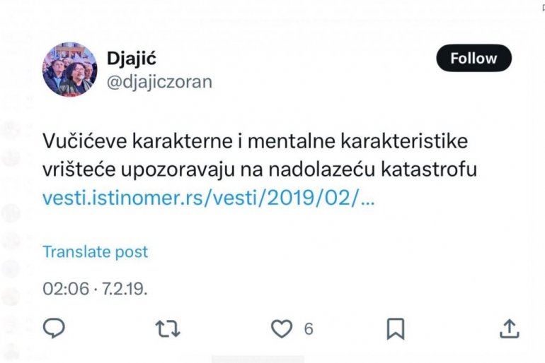 Ђајић на друштвеним мрежама константно напада и вређа председника Вучића.