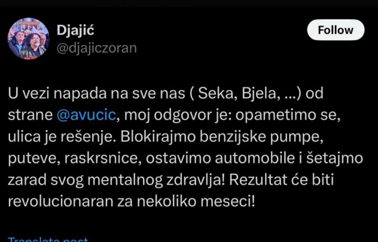 Иначе, Зоран Ђајић је био у првим редовима кад је опозиција након пораза на изборима 17. децембра 2023. јуришала на зграду Старог двора и демолирала ово здање, а лично Ђајић је позивао тада на рат.