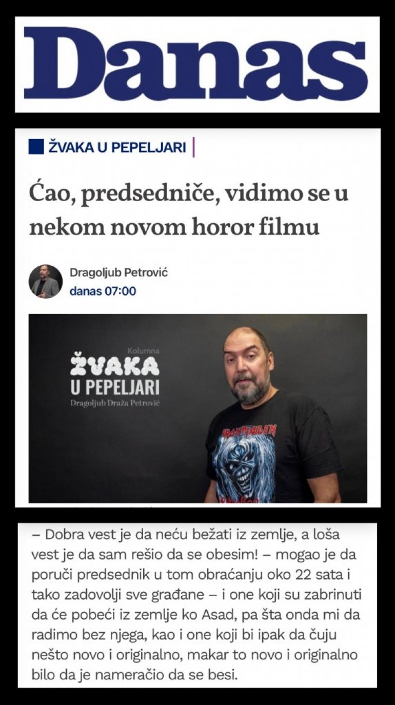 "Добра вест је да нећу бежати из земље, а лоша вест је да сам решио да се обесим, могао је да поручи председник у том обраћању око 22 сата".