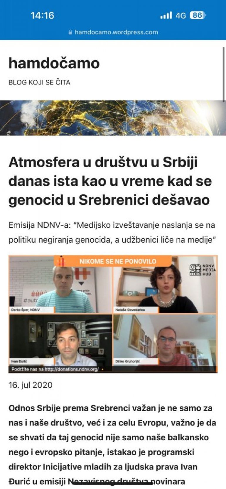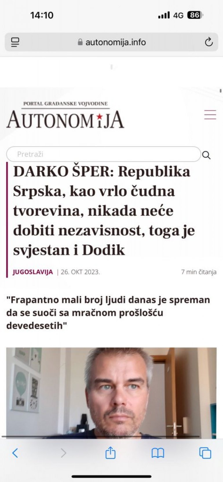 Човек коме је Република Српска геноцидна творевина, који је потписник петиције за "Слободну Војводину без СПЦ", коме је како се чини жеља да се жигоше српски народ као геноцидан.