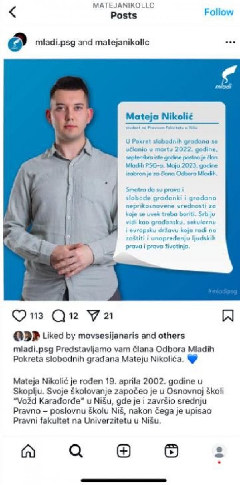 Николић је, заправо, члан Одбора младих Покрета слободних грађана.