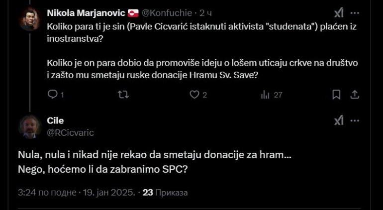 ОТАЦ ПАВЛА ЦИЦВАРИЋА ИЗЈЕДНАЧИО СПЦ СА НВО, И ПИТАО: Хоћемо ли да забранимо СПЦ? (ФОТО)