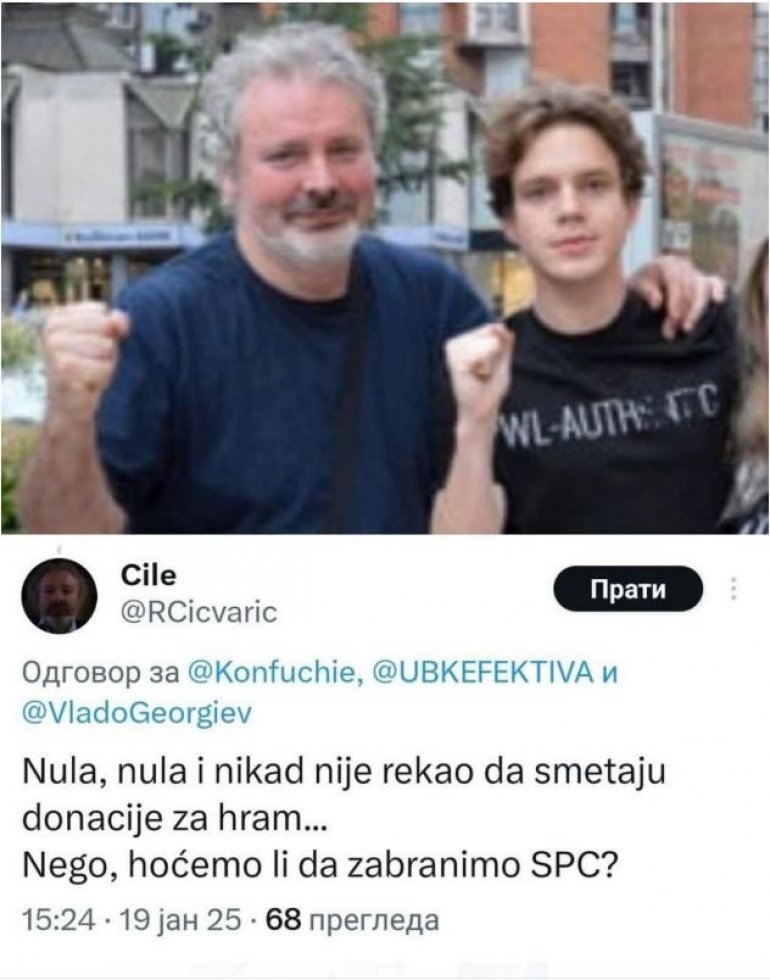 ОТАЦ ПАВЛА ЦИЦВАРИЋА ИЗЈЕДНАЧИО СПЦ СА НВО, И ПИТАО: Хоћемо ли да забранимо СПЦ? (ФОТО)