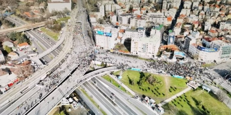 Увидом снимка из дрона јасно се види колико је одзив за блокаду Аутокоманде.