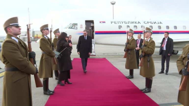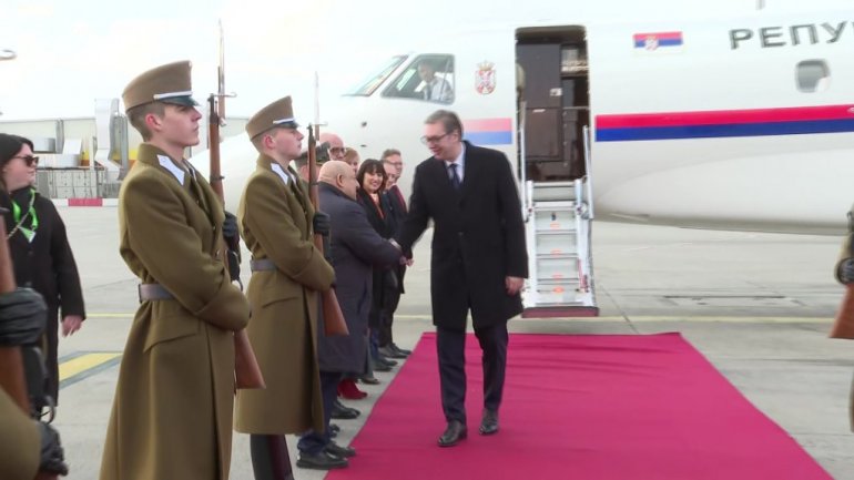 Председник Србије Александар Вучић стигао је данас у Будимпешту, у једнодневну посету Мађарској, а на аеродрому га је дочекао мађарски министар културе и иновација Балаш Јанко.