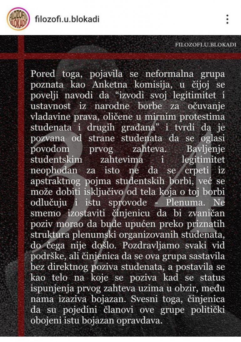 Како наводе, ова група се саставила без директног позива студената, што међу њима изазива бојазан.