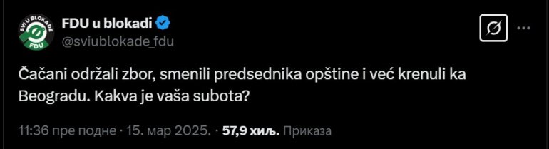 - Чачани одржали збор, сменили председника општине и већ кренули ка Београду. Каква је ваша субота?