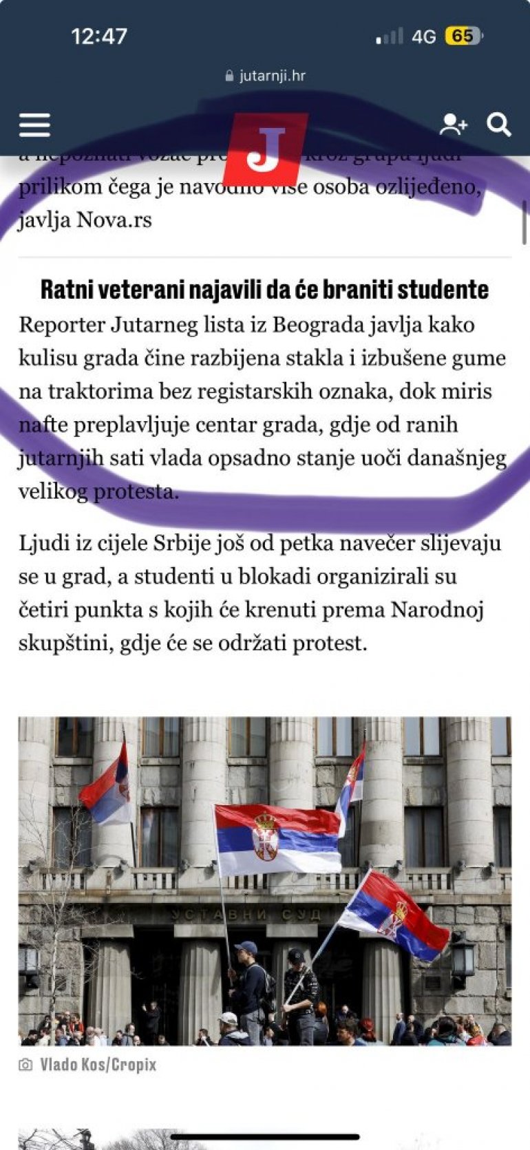УСТАШКИ Јутарњи лист хвали српске ветеране који ''бране студенте блокадере".