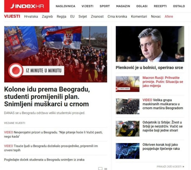 ХРВАТСКИ медији препуни су текстова и лицемерних објава о данашњим протестима у Београду, који су им важнији од живота њиховог премијера.