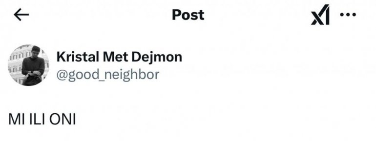 - МИ ИЛИ ОНИ - написао је он на друштвеној мрежи Икс.