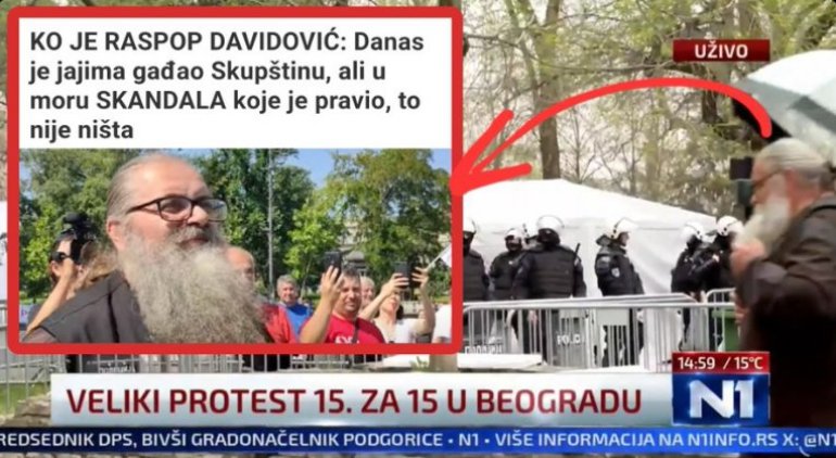 На данашњем скупу блокадера је распоп Антоније Давидовић ког је Српска православна црква протерала из својих редова.