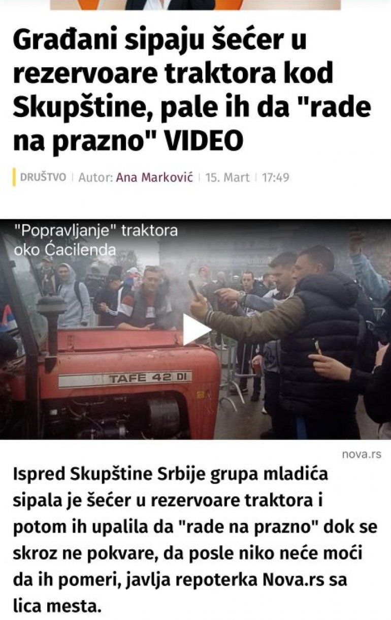 ШОЛАКОВА ТВ ПРИЗНАЛА: Студенти уништавају паркиране тракторе, сипају шећер у резервоаре и уништавају туђу имовину