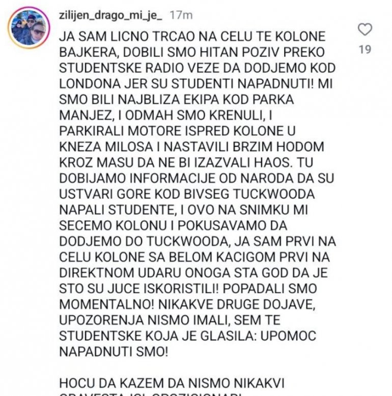 СВЕДОЧЕЊЕ СТУДЕНТА БЛОКАДЕРА: Објаснио шта се дешавало на протесту - ни речи о звучном топу