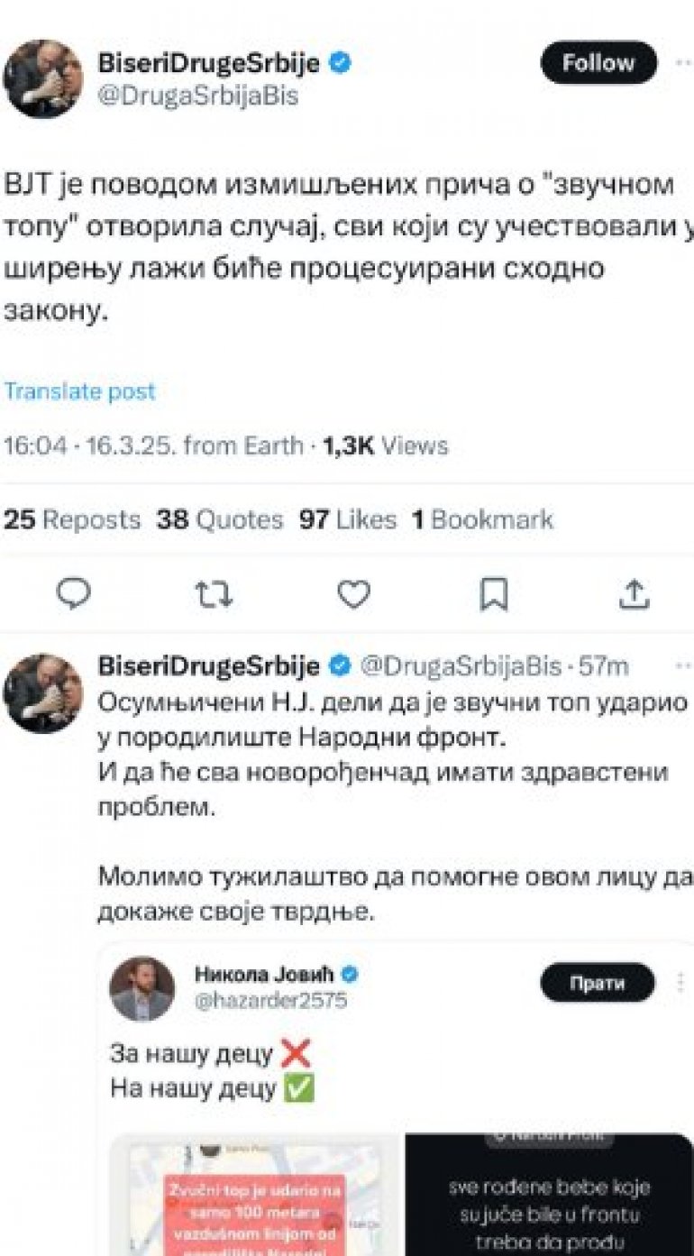 Међутим, међу присталицама опозиције и даље има оних који наставаљају да шире лаж о "звучном топу".