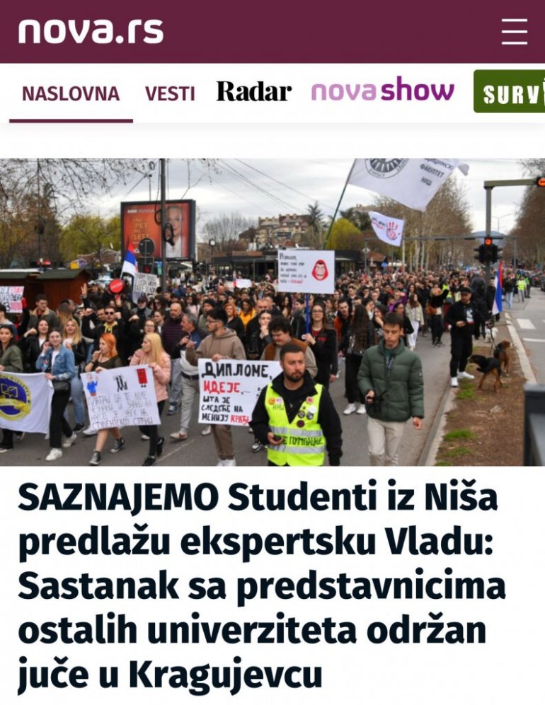 Како пишу Шолакови медији, студенти из Ниша предлажу Ђиласову владу, а одржали су састанак са ''представницима'' осталих универзитета у Крагујевцу. Састанак је, пишу Шолакови медији, одржан јуче.