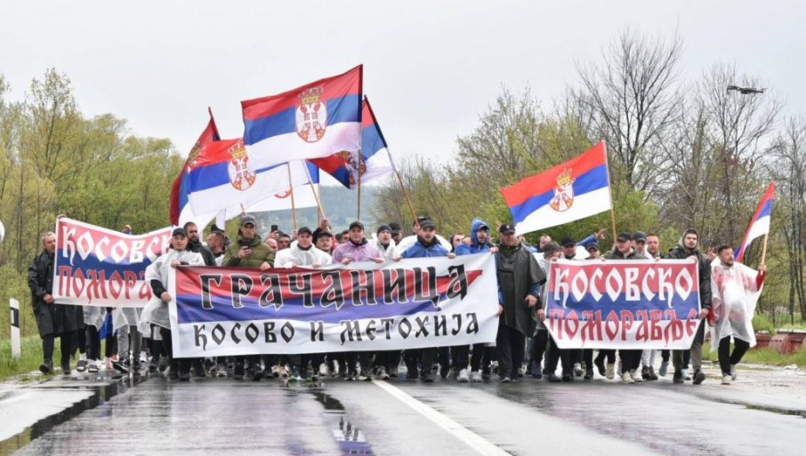 И током данашњег пута пратиле су их временске непогоде, смена јаког ветра и кише, али групу од 160 Срба са КиМ ни то није спречило да наставе свој пут, али видно уморни и исцрпљени после толико дана пешачења.