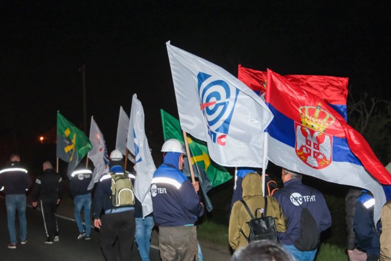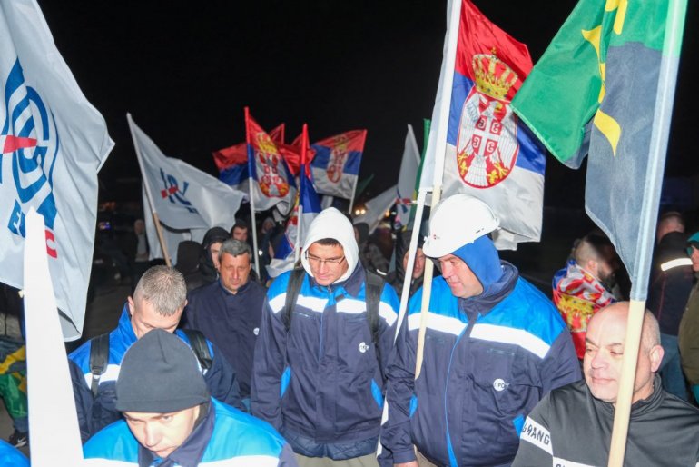 РУДАРИ ИЗ КОЛУБАРЕ КРЕНУЛИ У ТРИ УЈУТРУ ЗА БЕОГРАД: Корачају ка престоници - све за председника и државу (ФОТО)