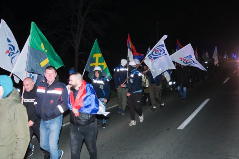 РУДАРИ из Колубаре кренули су јутрос у 3 ујутру на свенародни скуп у Београд како би подржали председника Србије Александра Вучића и државу. Они су се пут предстонице упутили пешака.