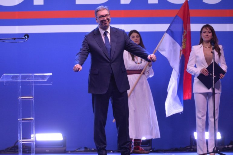 Председник је захвалио окупљенима што су дошли на скуп, посебно грађанима са Косова и Метохије, али и онима који су стигли из Црне Горе, Републике Српске и Северне Македоније. Поручио је да су у Београду виђени само осмеси и велико јединство. Осврнуо се на својих 13 година у државној служби, рекавши да је дао све од себе како би Србија постала боље место за живот, али и да ништа од тога не би било могуће без подршке народа. Окупљени су га прекидали повицима "Ацо Србине", "Победа"...