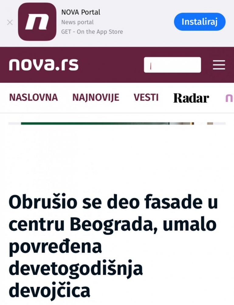 - Заувек! Погледајте, ову срамоту коју су направили ти портали. Пустили су вест да се обрушио део фасаде са зграде у центру Београда. У наслову стоји "умало повређена девојчица". А онда у вести прво да јесте повређена. А онда следећа реченица да није повређена. На оваквом извештавању би вам, да могу данас да вас виде, позавидели и Брозови црвени "медији" из 1945. године! - написао је он на Иксу.