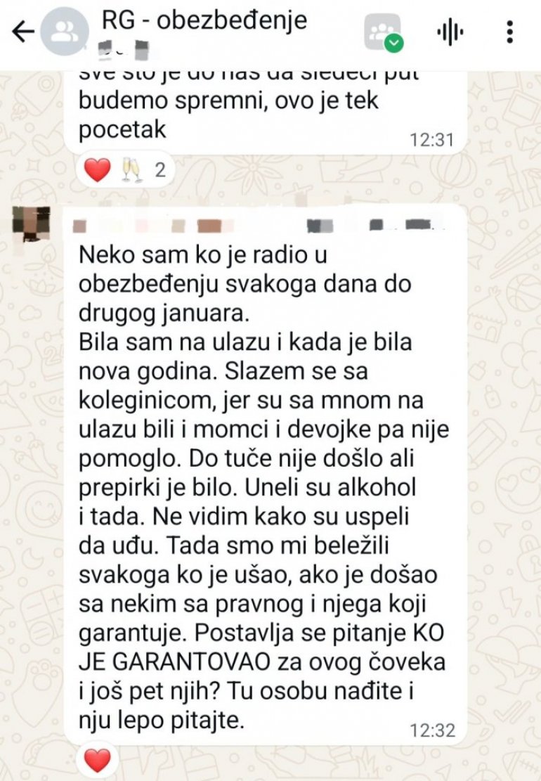 Такође, поново наводи да су "актери те туче послати од стране режима", иако су људи без проблема ушли на Факултет те ноћи, да се видело да су са собом унели алкохол и да им нико ништа није рекао око тога на почетку. Такође, ради се о људима који су опозиционо настројени и који су били редовни на блокадама.