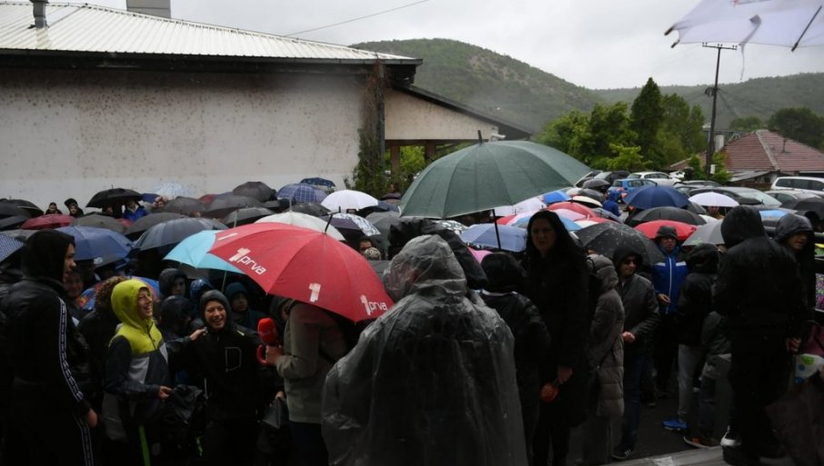 РОДИТЕЉИ СА ДЕЦОМ ИСПРЕД СПОРТСКЕ ХАЛЕ: Протест у Северној Митровици (ВИДЕО)