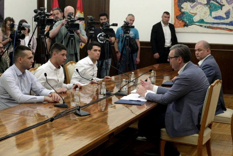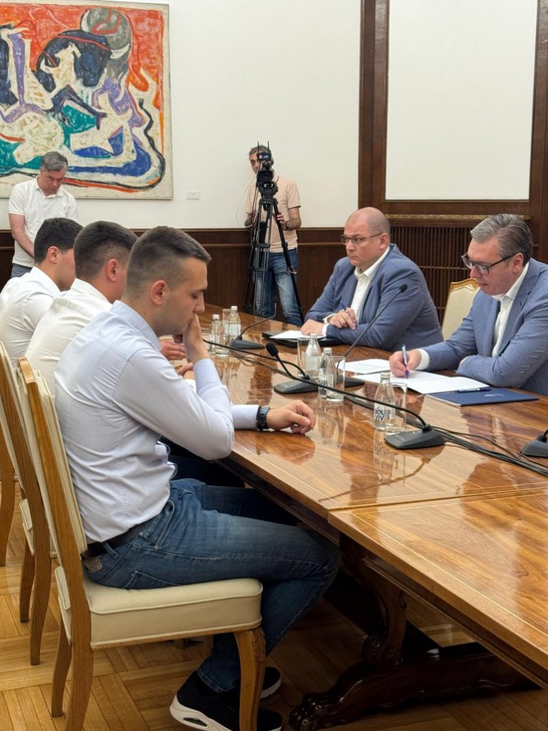 - Видео сам да вас двојицу нису пустили на своје факултете. Био сам забринут најавама вашег штрајка глађу, желео бих да чујем ваше проблеме - рекао је Вучић на почетку састанка.