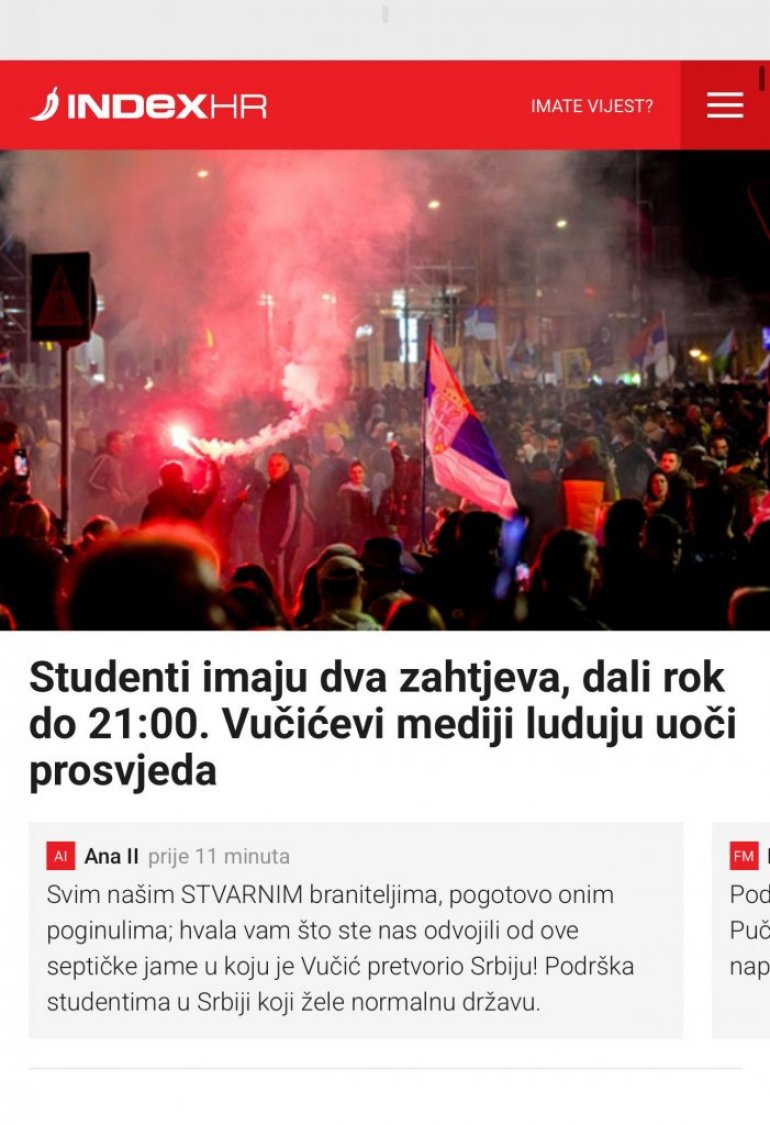 УСТАШКИ медији пружају пуну подршку блокадним терористима у Србији, а у коментару се усташе захваљују бранитељима за Олују и Бљесак и то сто нису у заједничкој држави са “септичком јамом Србијом”.