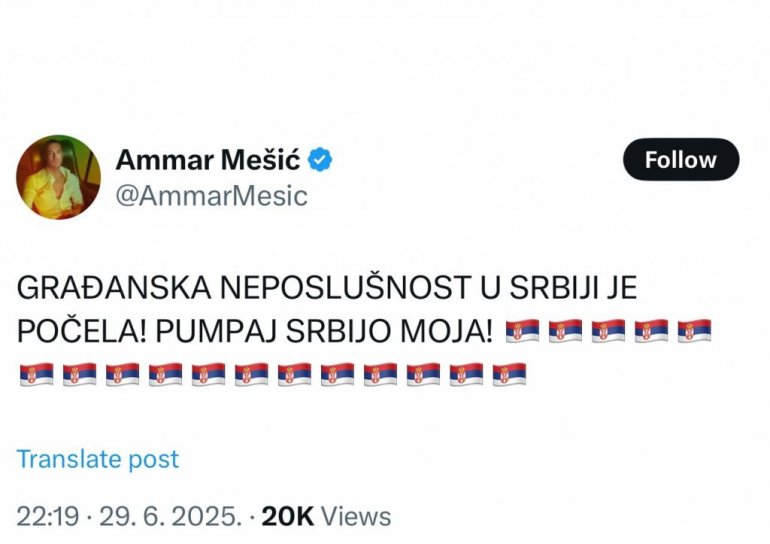 ГЛУМАЦ Аммар Мешић хушка на грађански рат и руши Србију из Хрватске.