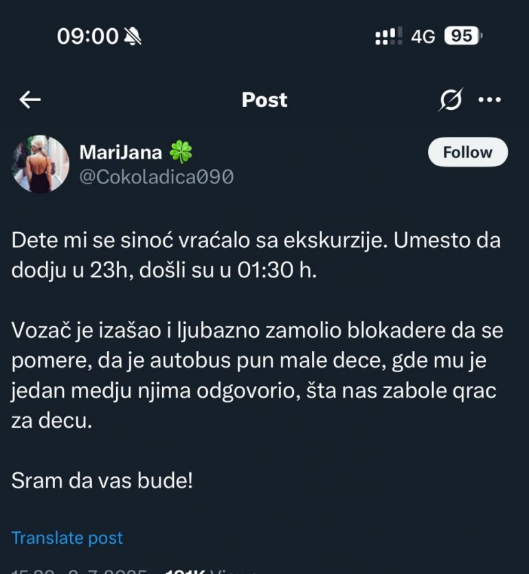 "ШТА НАС БОЛИ К**** ЗА ДЕЦУ" Блокадери зауставили аутобус пун малишана, многи стигли кућама тек касно у ноћ (ФОТО)