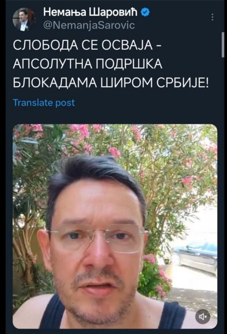 БЛОКАДЕР Немања Шаровић из "јуначки" је подржао оне који грађане ометају да стигну до посла или болница из дебеле ладовине.