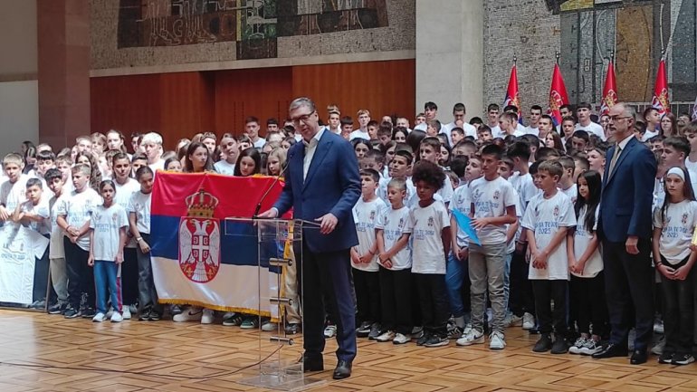 - Прошле године када смо били овде, није била ни половина деце. Мораћемо већу салу да направимо за следећу годину. Много сам срећан што вас видим овде. Надам се, драга децо, да уживате у дружењу, да уживате у спортским активностима, да сте уживали и приликом посете Експу, Београду на води, Храму Светог Саве. Да сте додатно заволели Белград, а да су они који су први пут овде имали прилику да науче нешто о нашем главном граду - казао је председник.