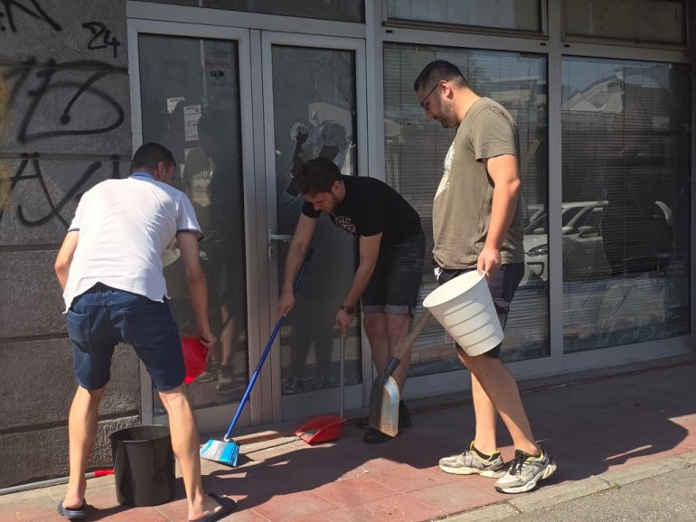 Маскирана лица дошла су испред просторија странке и штанглама и металним шипкама разбили стакла на објекту.