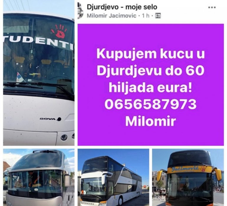 Миломир Јаћимовић, аутопревозник из Ђурђева, прави је пример како се „народни бунт“ претвара у лични бизнис. Представља се као прогоњена жртва, тражи помоћ, скупља донације – а заправо купи нове аутобусе, шири фирму и купује куће.
