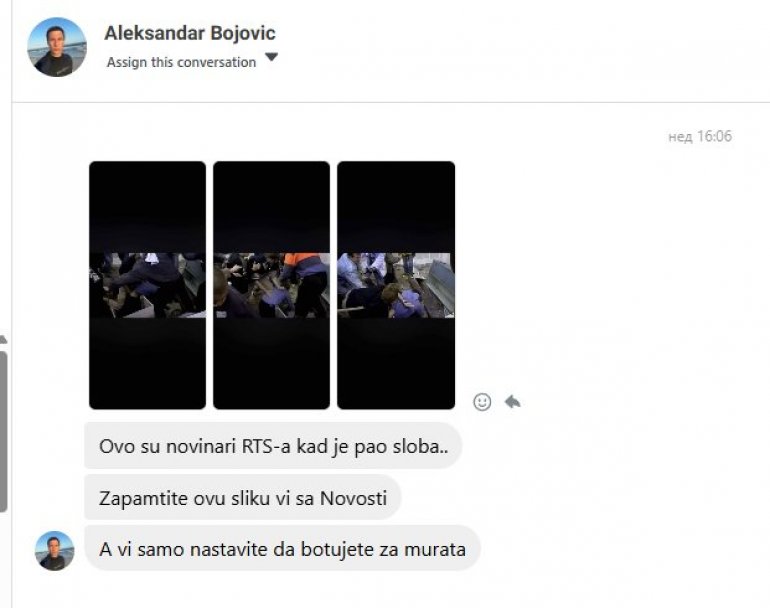 СА Фејсбук профила на ком се наводи име и презиме Александар Бојовић стигле су претње новинарима "Вечерњих новости".