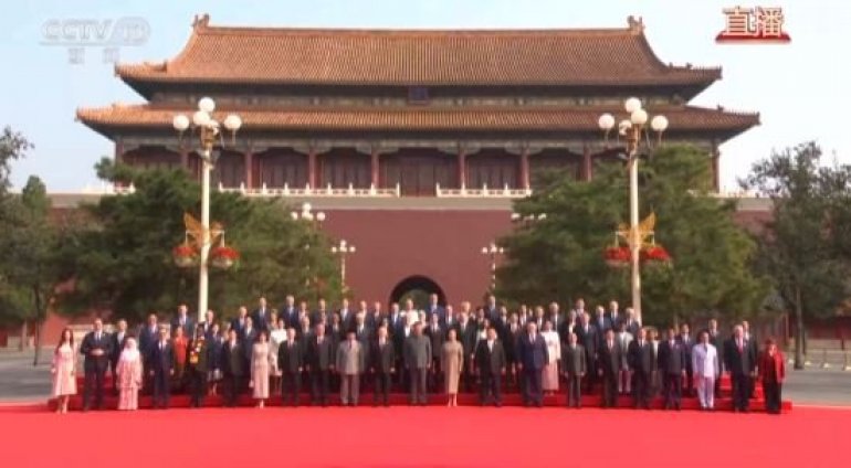 На Тргу Тјенанмен у Пекингу одржана је велика церемонија поводом 80. годишњице победе у Кинеском народном рату отпора против јапанске агресије и Светском антифашистичком рату. Пре почетка церемоније, Си Ђинпинг и његова супруга Пенг Лијуан поздравили су шефове страних делегација и њихове супружнике који су присуствовали церемонији на тргу испред капије Дуанмен и фотографисали се са њима.