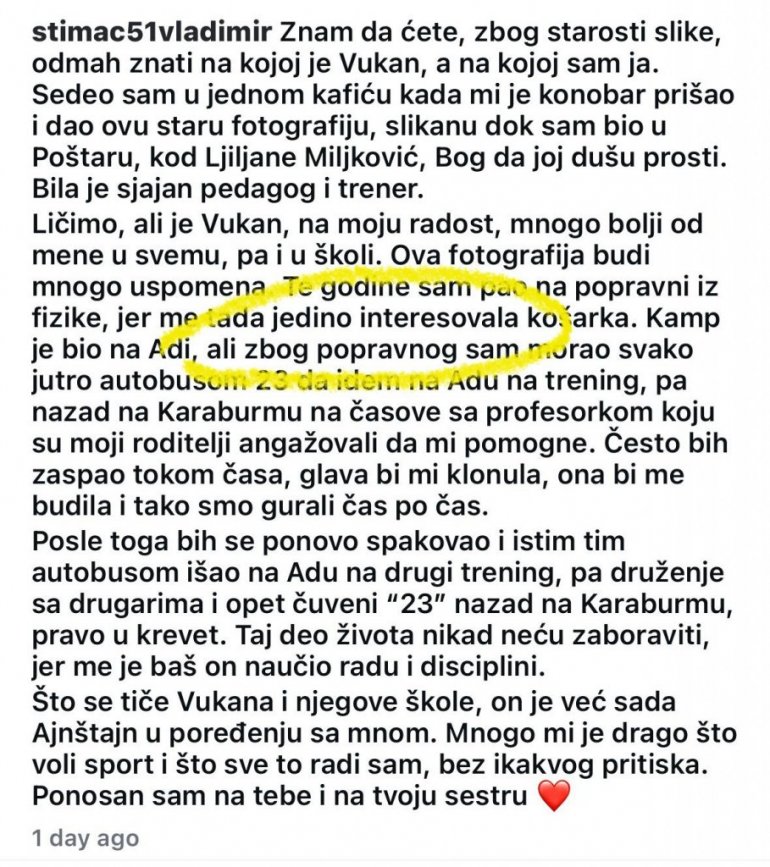"Ова фотографија буди много успомена. Те године сам пао на поправни из физике, јер ме тада једино интересовала кошарка."