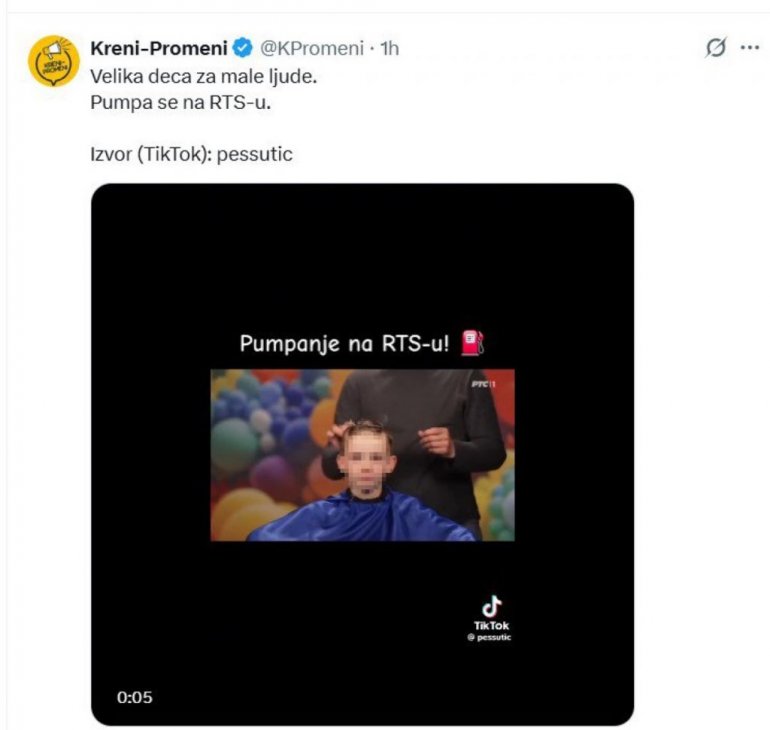 Покрет Крени-Промени Саве Манојловића реаговао је на Иксу: - Велика деца за мале људе. Пумпа се на РТС-у.