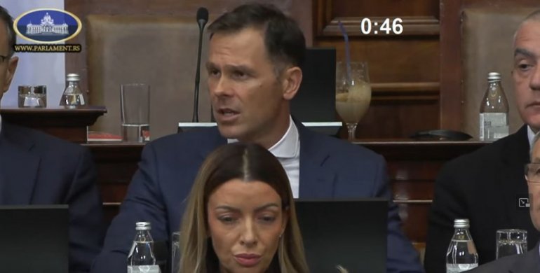 Посланик Небојша Бакарец (СНС) упутио је питање хоће ли Тужилаштво у Новом Саду испитати шокантан снимак на којем се види "вођа опозиције Миша Бачулов како само три сата пре страшне трагедије унезверено пролази испод надстрешнице и гледа у телефон с обзиром да је шанса да се баш ту нађе тог дана један према милион".