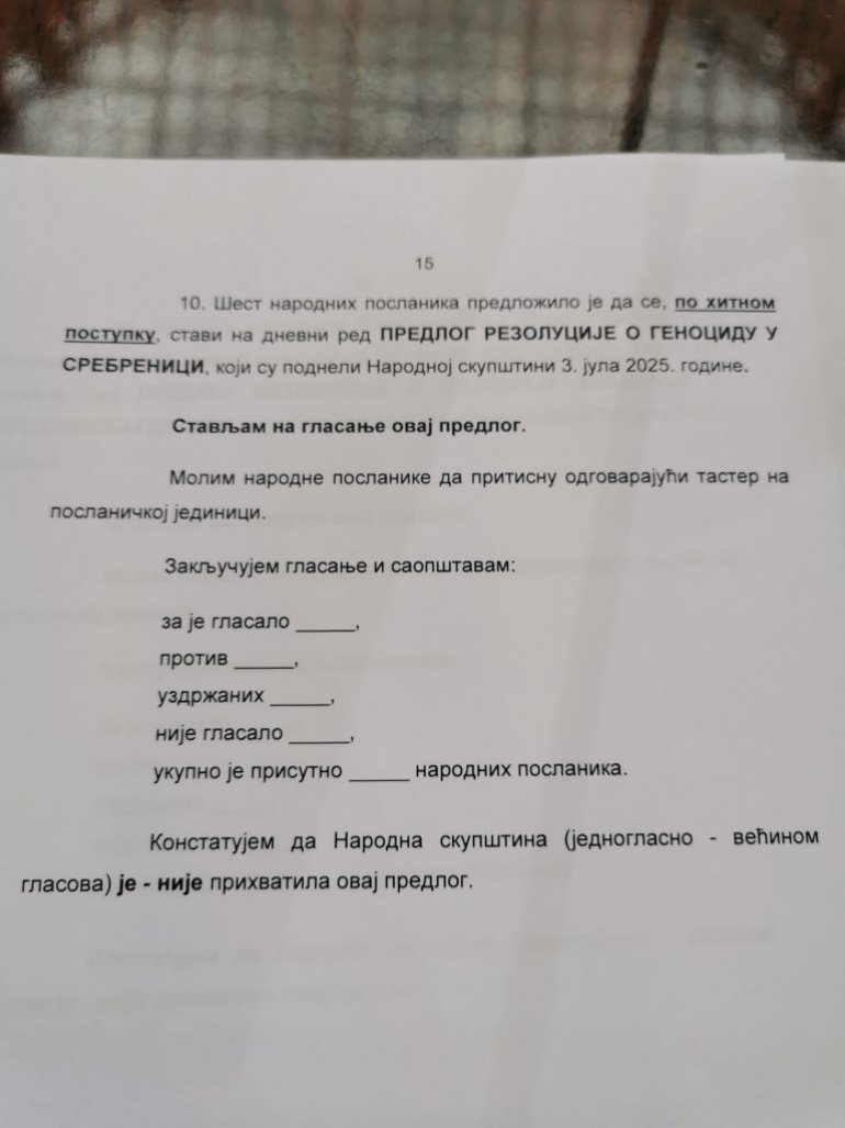 СРАМНО! Ових шест посланика гласало за стављање на дневни ред разолуције о геноциду у Сребреници