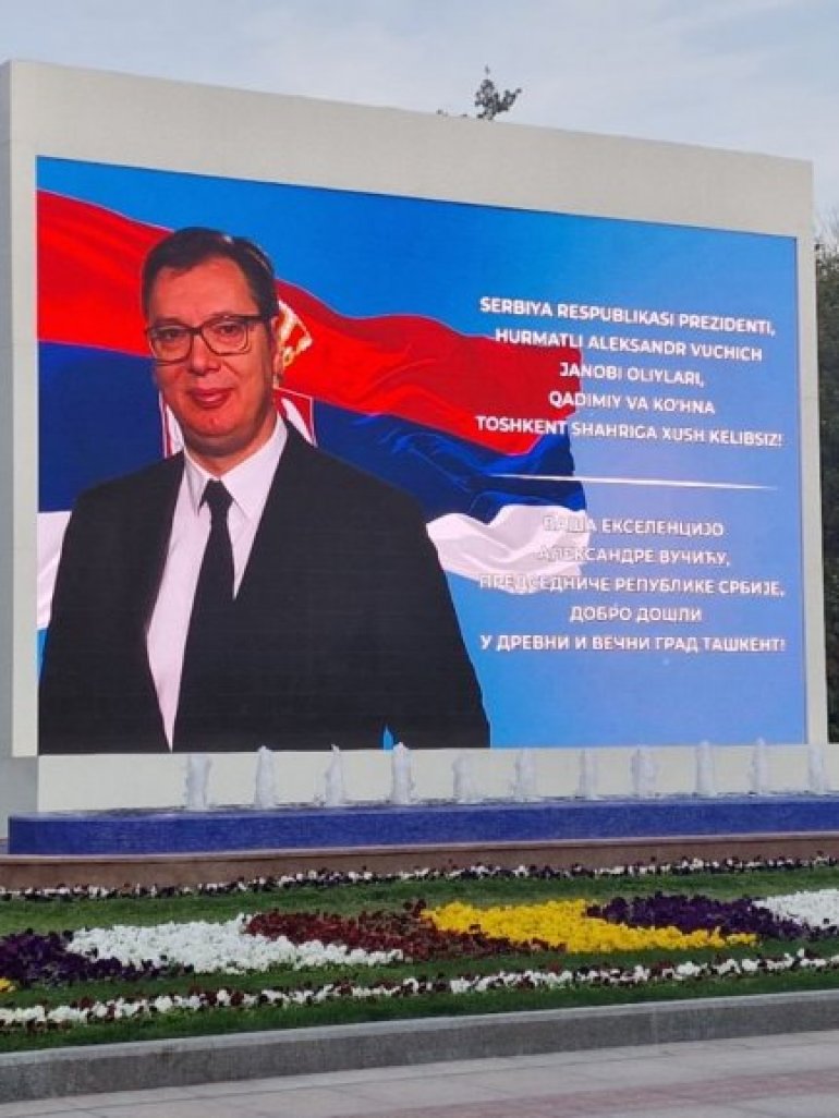 "ВАША ЕКСЕЛЕНЦИЈО ДОБРО ДОШЛИ У ДРЕВНИ И ВЕЧНИ ГРАД" Вучић стигао у посету Узбекистану - Широм града поруке добродошлице на ћирилици