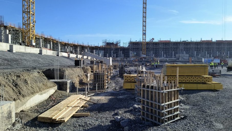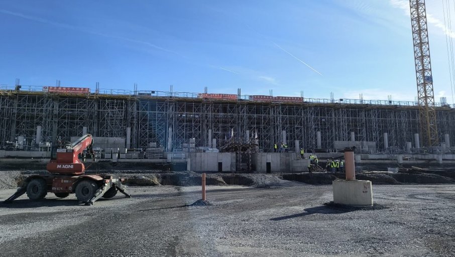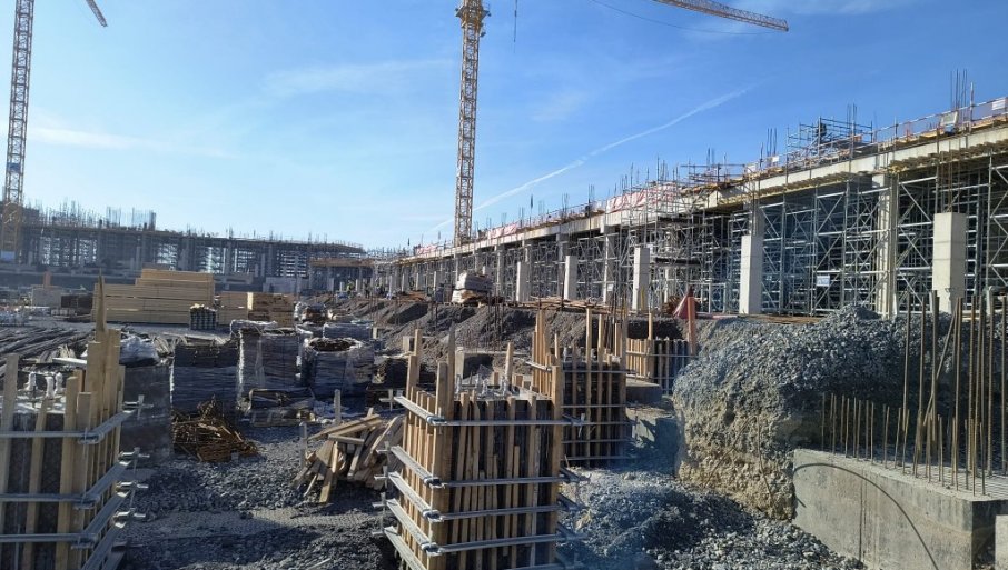 Радници раде у 2 смене, што је 20 сати дневно. 2448 шипова је уграђено за стабилизацију целог објекта, темељи су завршени 97 одсто, рекао је Вучић.