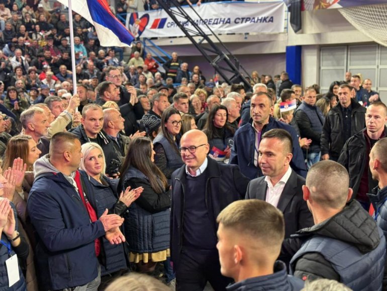 Халом одјекује "Ацо, Србине", а стигао је и председник СНС Милош Вучевић.