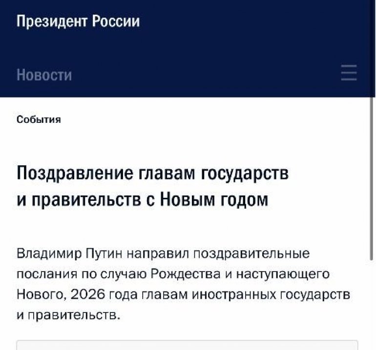 Путин је Нову годину честитао и кинеском председнику Си Ђинпингу, америчком председнику Доналду Трампу и индијском премијеру Нарендри Модију.