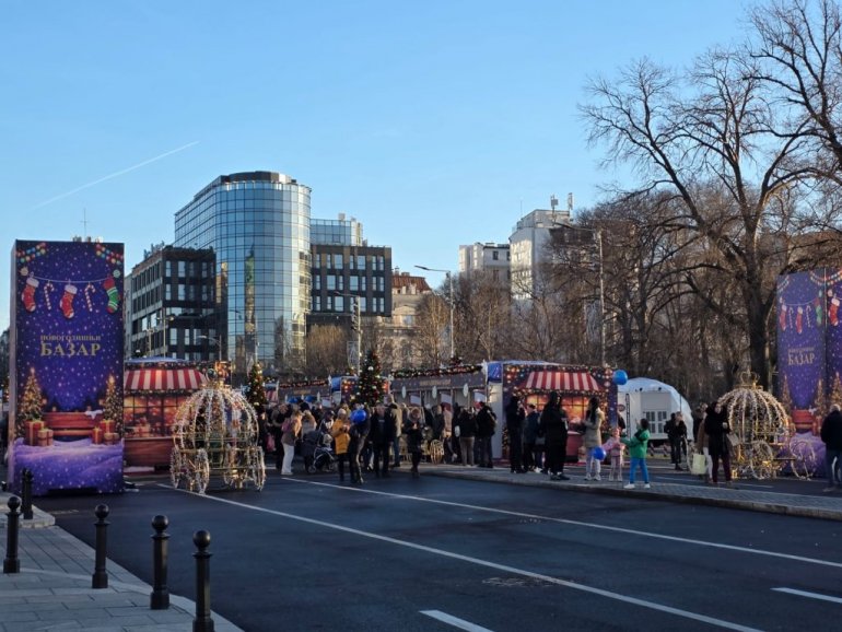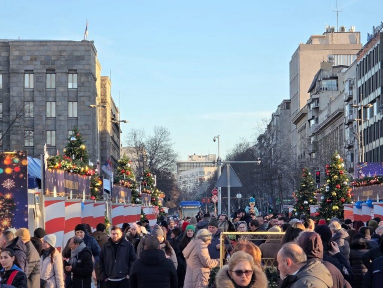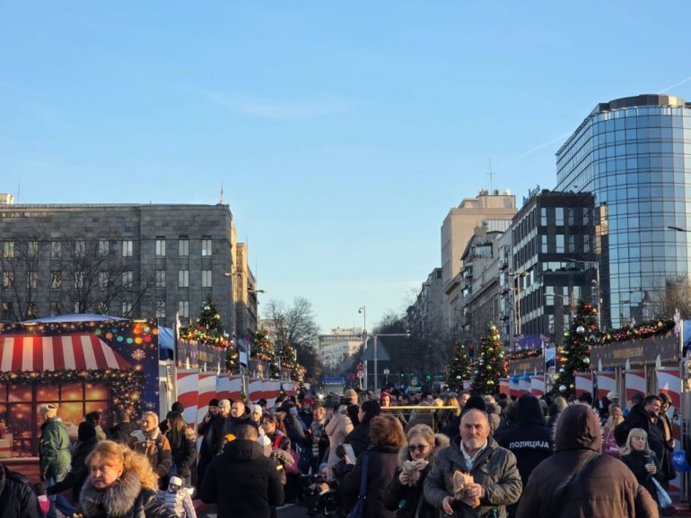 На новогодишњем базару испред Скупштине присутан је велики број грађана.