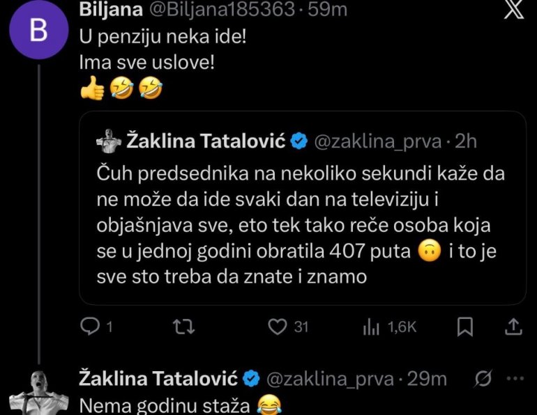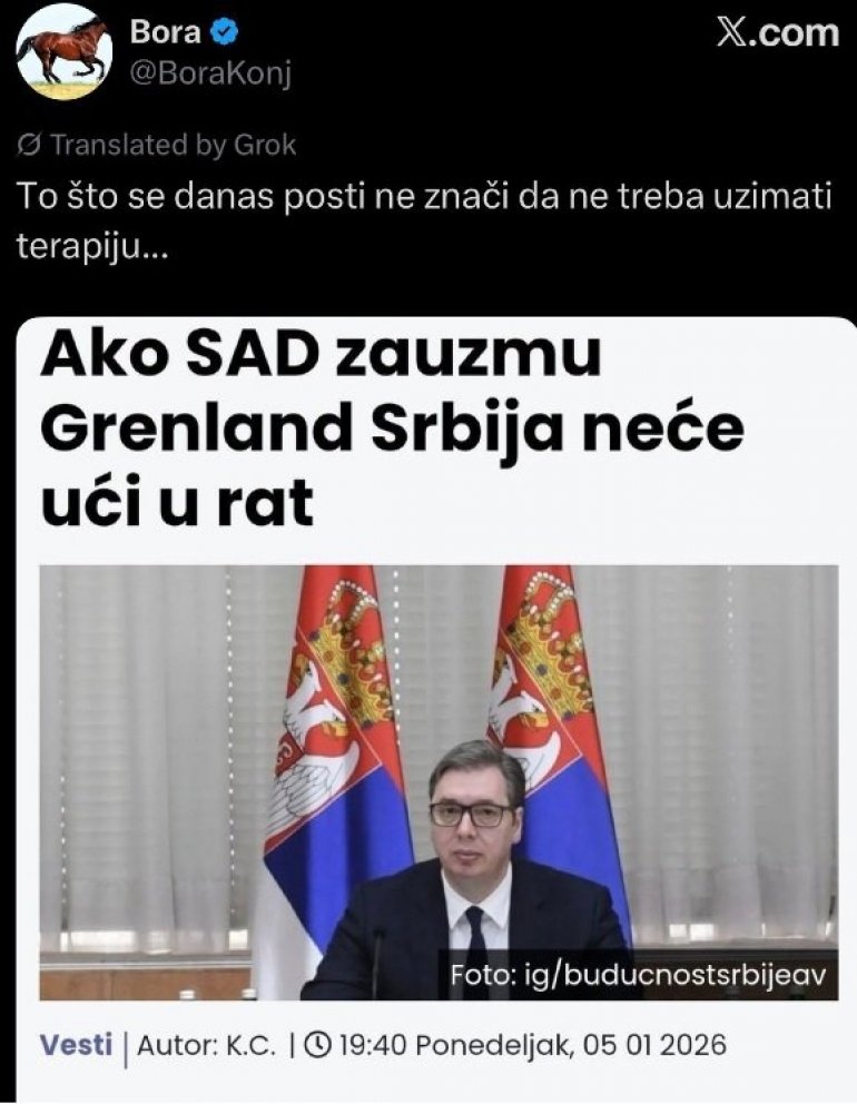 - Постоји разлог зато што га људи пажљиво слушају, а било је и сасвим јасно да је он радио током празника, да је пратио ствари, свет није стао. За мене је његов говор у Требињу био истројиски, и видим да им је то изузетно засметало. Он је говорио о томе да се Србија неће мешати у сукобе великих сила, да ћемо чувати мир и да градимо наше одбрамбене капацитете тако да никакав агресор не може да угрози Србију. То је оно што им је изузетно засметало и то вам говори о томе како они виде Србију и какву би земљу волели да виде и каква би Србија била да је они воде. То би поново било уништавање - рекла је Брнабић.