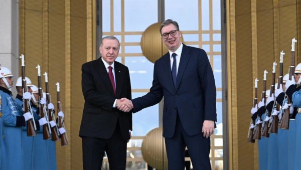 - Данас ме у Председничкој палати чека низ разговора од стратешког значаја за односе Србије и Турске. Наше земље имају развијене политичке односе, интензивну економску размену и снажан инвестициони циклус, посебно у области инфраструктуре, енергетике, пољопривреде и туризма. Очекујем да додатно унапредимо трговинску размену, отворимо простор за нове инвестиције турских компанија у Србији, али и охрабримо веће присуство наших привредника на турском тржишту. Посебну пажњу посветићемо и регионалној стабилности, очувању мира на Западном Балкану и координацији у међународним форумима, у светлу актуелних геополитичких изазова. За Србију је од суштинског значаја да гради односе са важним регионалним и глобалним актерима на принципима међусобног поштовања и конкретне користи за наше грађане. Верујем да ће данашњи разговори дати додатни замајац стратешком партнерству са Турском, као и да ће допринети позиционирању Србије као поузданог и одговорног партнера у региону и шире - истакао је Вучић.